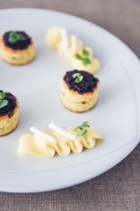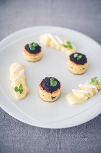 Disposer sur une assiette 3 mini sablés bretons au confit d’olives de Kalamata. Sortir le crémeux au citron et dresser joliment 3 barrettes de crémeux.