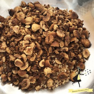 a- Torréfier les noisettes. ajoutez-les au pralin et mélanger à la spatule.