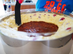 4/ Recouvrir avec votre deuxième cercle de génoise. Si il vous reste un troisième cercle de génoise, répétez l’étape précédente sinon on passe à la décoration !