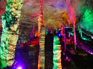 Lorsque j’ai vu ce dragon sculpté dans la pierre et que nous avons découvert cette grotte ornée de stalactites et stalagmites de toutes les couleurs, je me suis dit « J’ai le titre de mon prochain livre ! » : Le Mystère du Dragon Jaune.