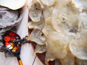 – disposez les tranches de poires sur une feuille de papier sulfurisée et direction le four 1 heure à 50 degrés. Réservez.